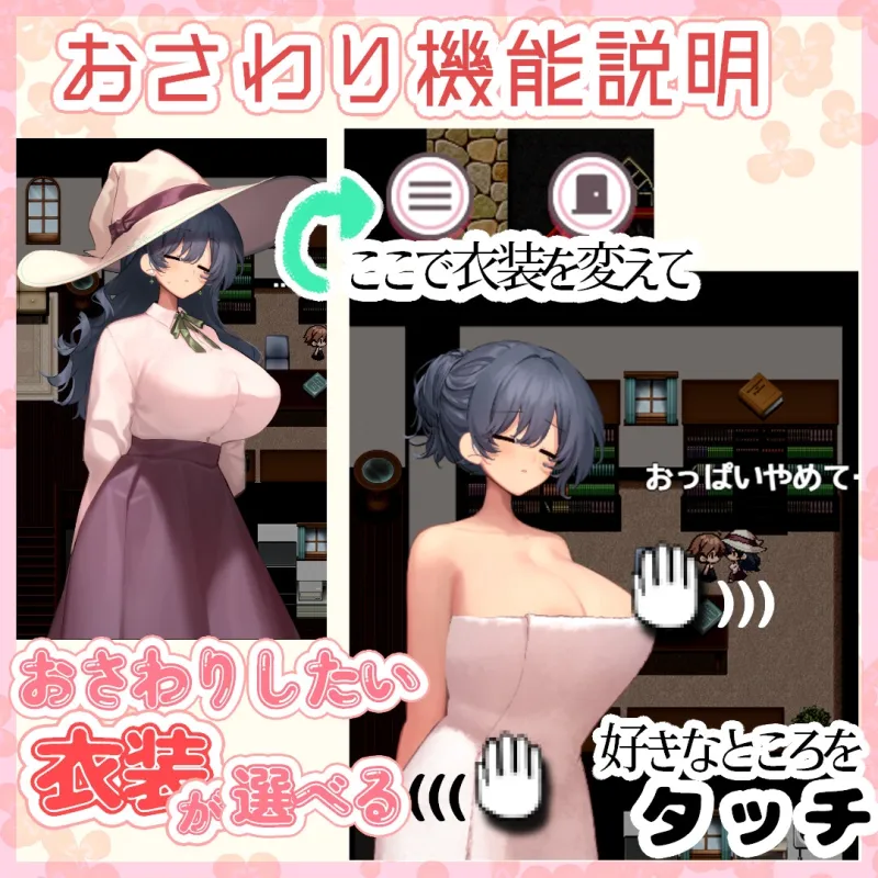 スキンシップコマンドを選択することにより、魔女さんをおさわりすることができます。