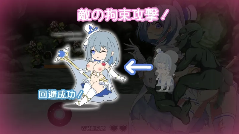 回避に失敗すると衣装が破壊され、破壊され尽くされると敵に強制されてしまう。