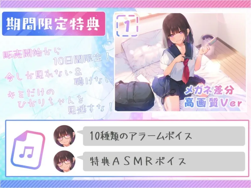 10日間限定 豪華な特典付き!(1)アラームボイス(2)ASMR耳かき音声(3)メガネなし差分