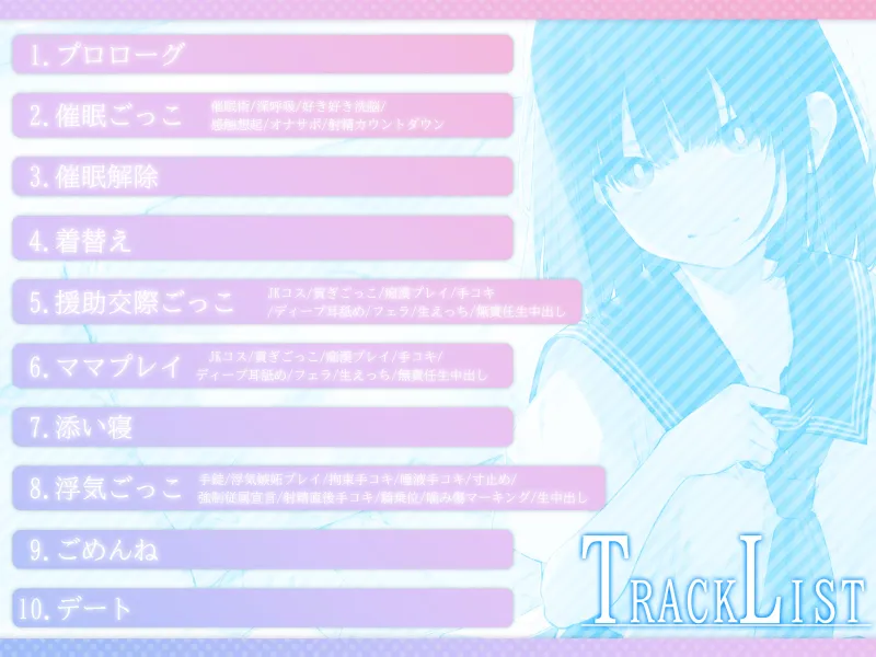 最初に「催眠ごっこパート」にて「すきすき暗示」を受けてもらうことでひかりちゃんへの愛しさを最大限に高めた状態でご視聴頂けます。