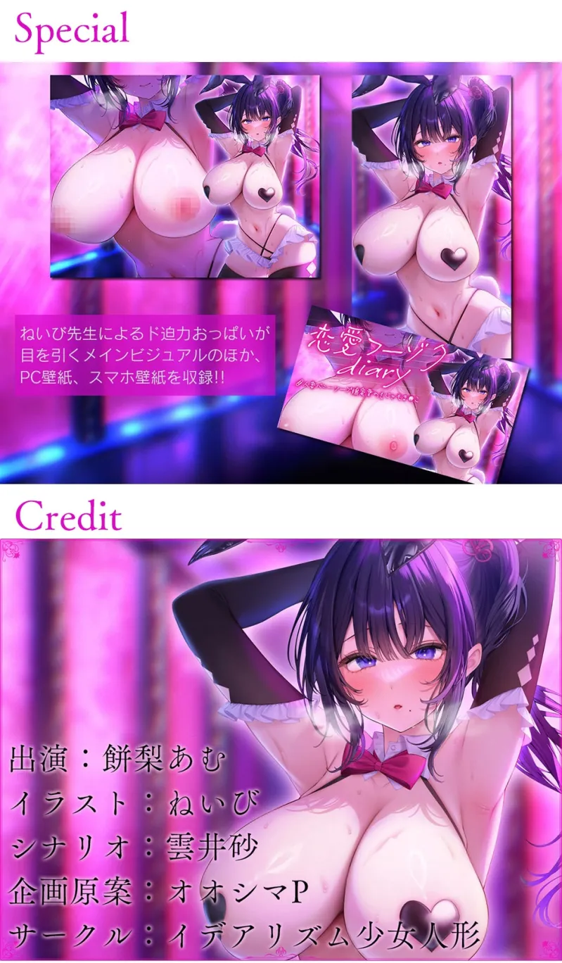 ねいび先生によるド迫力おっぱいが目を引くメインビジュアルのほか、PC壁紙、スマホ壁紙を収録!!