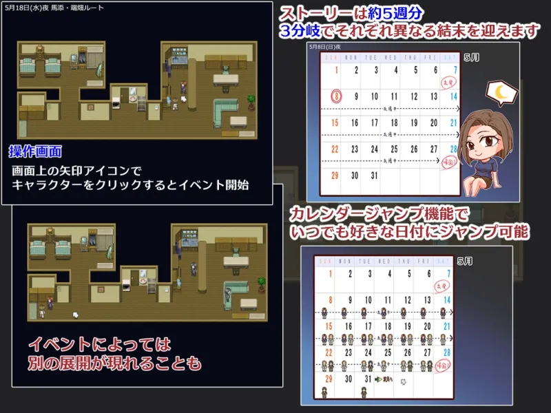 カレンダーからゲーム中の各日へのジャンプ機能あり。