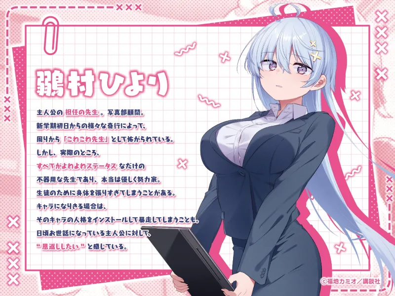 しかし、実際のところ、すべてがよわよわステータスなだけの不器用な先生であり、本当は優しく努力家。生徒のために身体を張りすぎてしまうことがある。