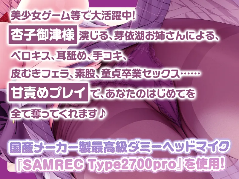 [お姉さんが全部脱がしてあげる♪ / 童貞おちんぽ嗅ぎ / 優しい手コキ / 悪戯な手コキ / はじめての射精 / 皮むいてあげるね♪ / むきたておちんぽ舐め / ねっとりフェラ / 喉奥フェラ / 白いの飲んであげる♪ / 「他のも出ちゃいそう?」おしっこも飲んであげる♪]