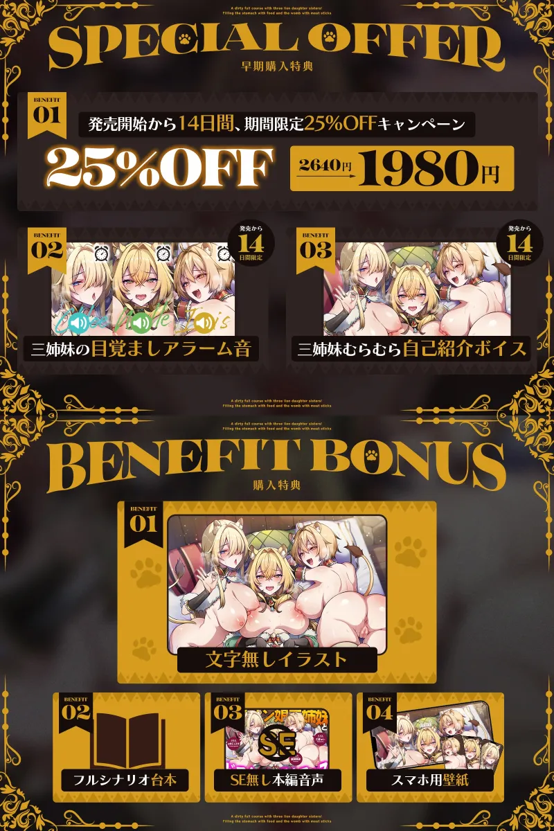 【✅1周年記念✅ロング作品&早期購入特典付き!】ライオン娘三姉妹とドスケベフルコース!~料理で胃袋、肉棒で子宮を満たす日々~【KU100収録】