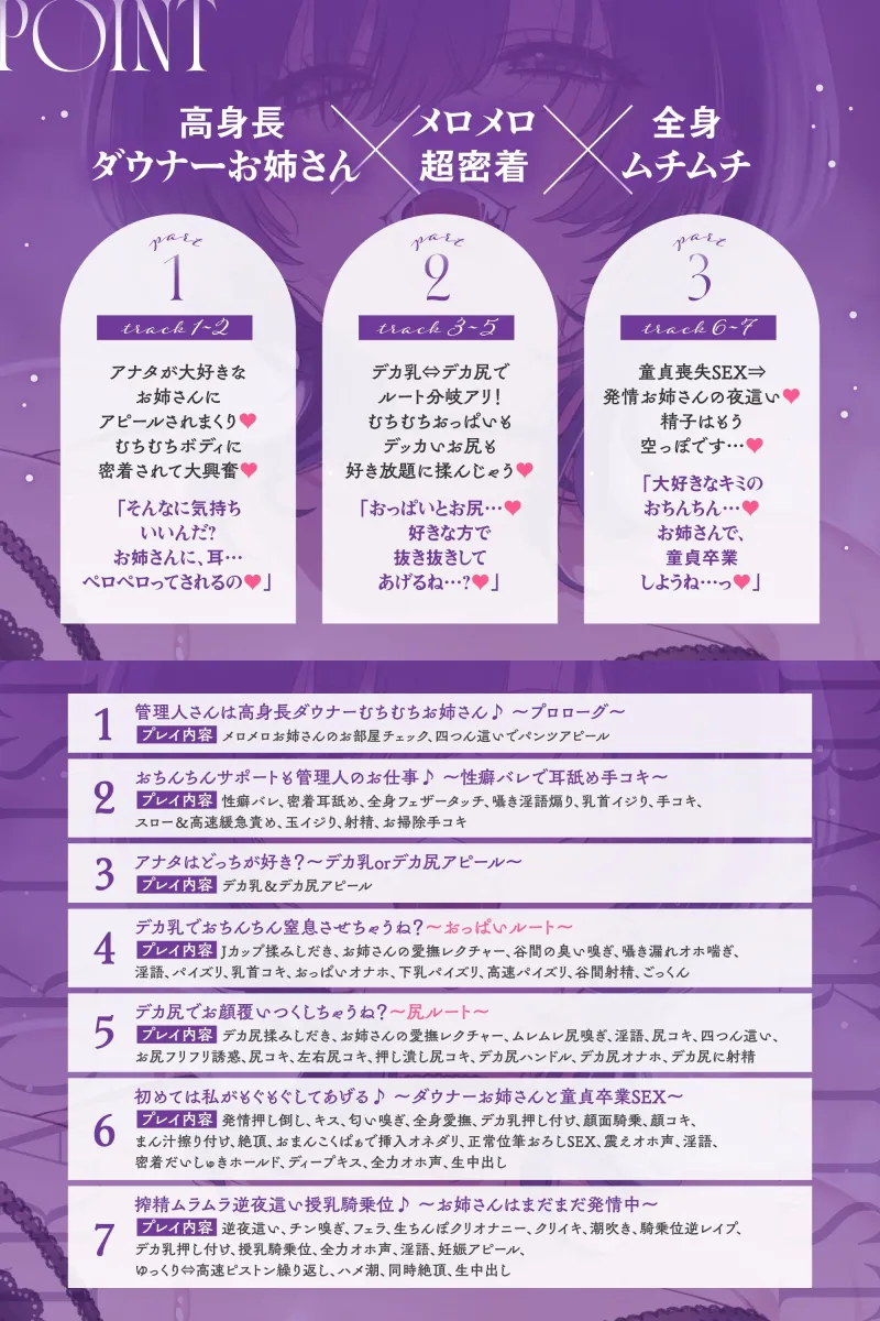 ♡超密着&耳舐め求愛♡ お隣さんのむちむちダウナーお姉さんの溺愛が止まらない♪「デカ乳とデカ尻…♡どっちが好き?」性癖バレ×童貞喪失【ルート分岐有り】