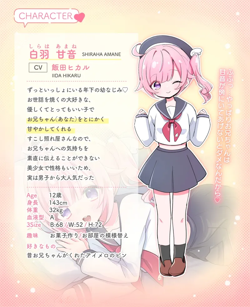 ✅*☽ CHARACTER *☽ とにかく「あなた」を甘やかしてくれる♡とっても可愛い年下の幼なじみ美少女♡