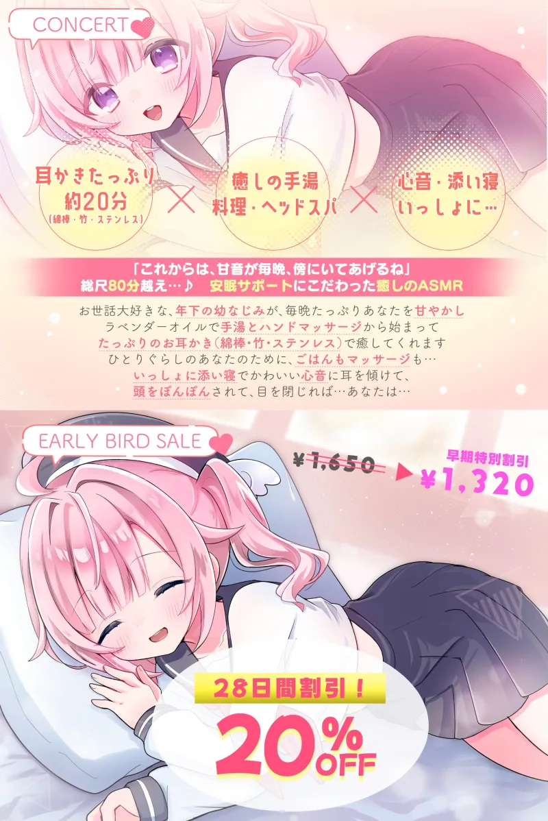✅20%OFF✅【安眠特化×全肯定お耳かき♡】小さな幼なじみが甘やかし&お世話してくれる夜♡「えへ…甘音もベッド入っちゃった♡」安眠誘導音声/心音添い寝/マッサージ
