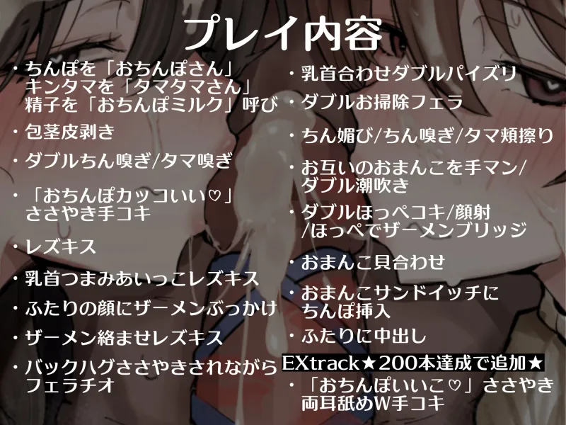 ちんぽをふたりでさわさわご挨拶/「おちんぽさん」「タマタマさん」「おちんぽミルク」呼び/包茎ちんぽ剥き/ダブルちん嗅ぎ/「おちんぽカッコいい」ささやきでいいこいいこ手コキ/射精
