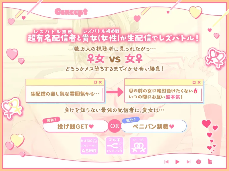 【KU100】ミオのレズバトルちゃんねる! 登録者数100万人超!人気配信者と貴女が生配信で本気のイかせ合いレズえっち勝負!