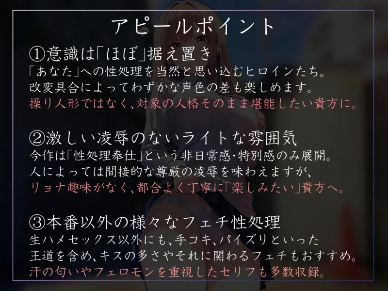 (性処理宣言させゴムあり挿入してすぐ暴発射精・耳舐めされつつ腰ヘコしてゴムあり射精・無自覚にアクメさせる・お掃除フェラを当然と思い込ませる・ディープスロートで喉奥射精)