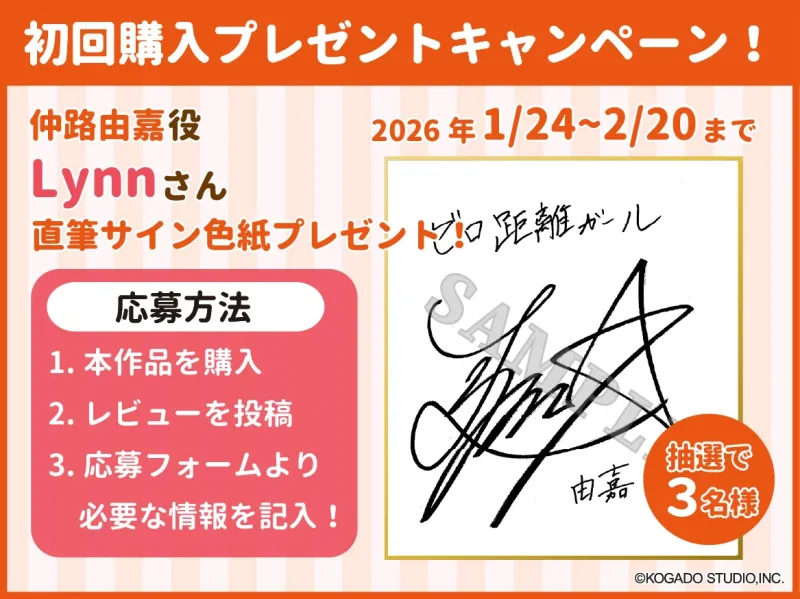さらに対象期間中に購入&レビュー掲載で、仲路由嘉役・Lynnさんの直筆サイン色紙が抽選で3名様にあたるプレゼントキャンペーンも実施いたします。