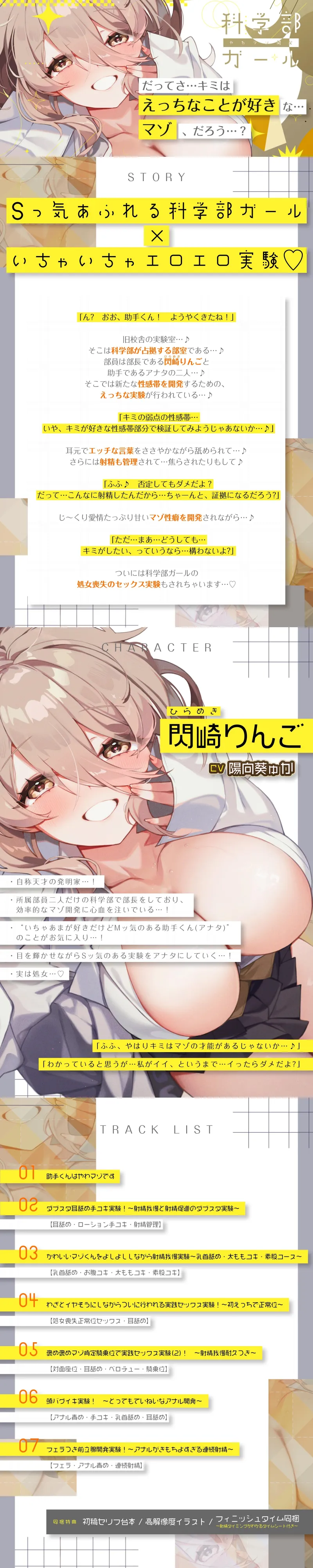 CV:陽向葵ゅか様演じる、Sっ気あふれる科学部ガールとのいちゃいちゃエロエロ実験をたっぷりお楽しみください…♪♪