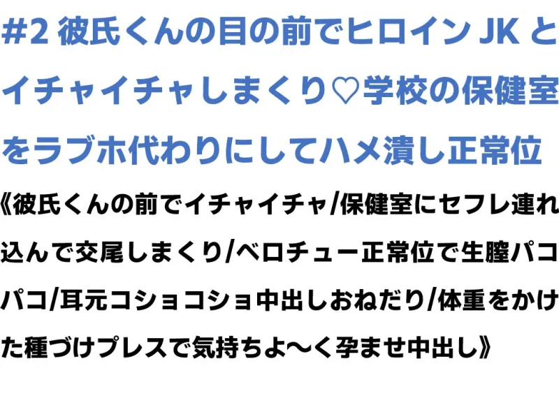 #2彼氏くんの目の前でヒロインJKとイチャイチャしまくり♡学校の保健室をラブホ代わりにしてハメ潰し正常位♡