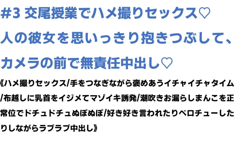 #3交尾授業でハメ撮りセックス♡人の彼女を思いっきり抱きつぶして、カメラの前で無責任中出し♡