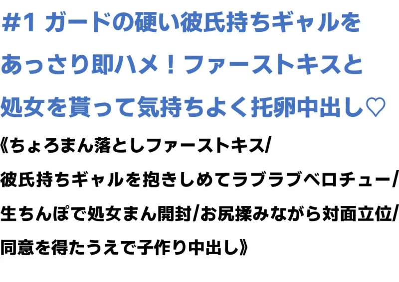 #1ガードの硬い彼氏持ちギャルをあっさり即ハメ!ファーストキスと処女を貰って気持ちよく托卵中出し♡