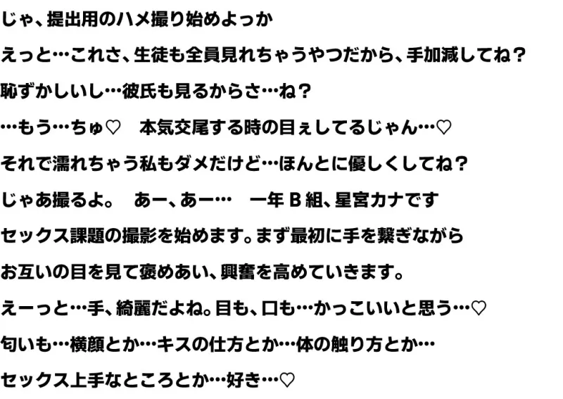 《オナニー代わりの即ハメ騎乗位/オスの自尊心を煽るチン媚び囁き/好き好きあまあまディープキス/脳がとろける心情代弁/彼氏持ちJKの生膣にお手軽中出し》