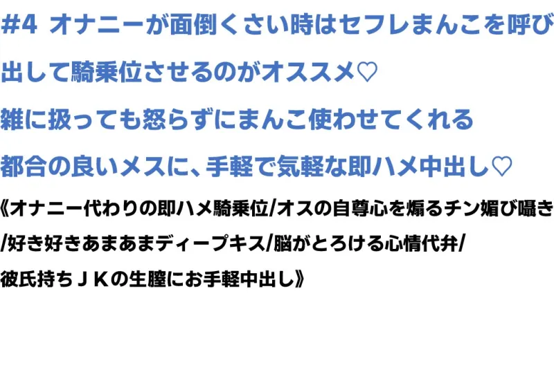 #4オナニーが面倒くさい時はセフレまんこを呼び出して騎乗位させるのがオススメ♡雑に扱っても怒らずにまんこ使わせてくれる都合の良いメスに、手軽で気軽な即ハメ中出し♡