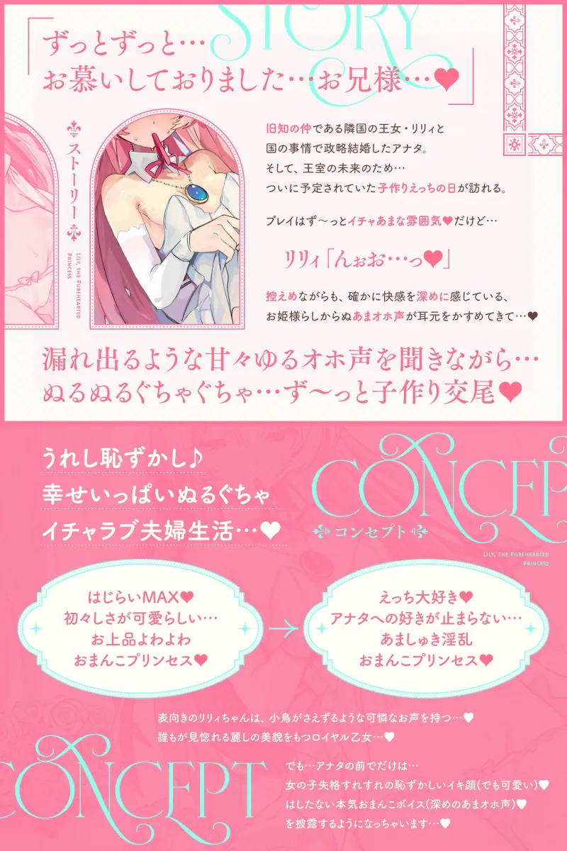 アナタの前ではいつも可愛いままでいたいのに、えっちのときにプリンセス失格な喘ぎ声が漏れてしまうことが悩み。