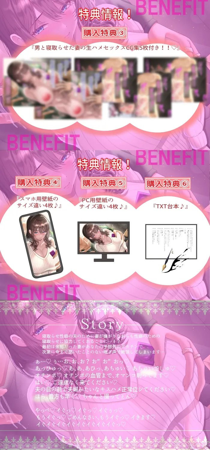 通常購入特典(3):男と寝取らせた妻の生ハメセックスCG集5枚付き(セリフなし込み10枚)♪
