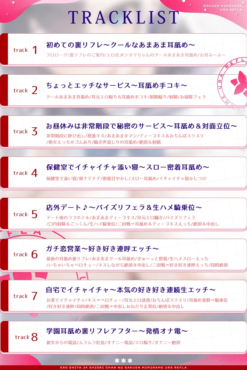【全編耳舐め】エロ舌JKシオリちゃんの学園耳舐め裏リフレ~クールであまあまなガチ恋営業編~