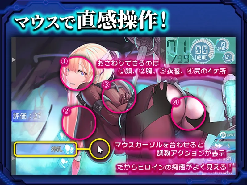 本作では、調教シーンの表示が最小限にできるように設計しています。