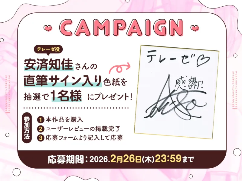 作品のレビューをしてくださった方に直筆サイン色紙を抽選で1名様にプレゼント!