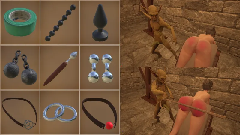 脱出が見つかったり、物を盗んだり、主人の使いに失敗すると罰を受けます。その場で即座に陵辱されるか、周囲のHな装置に拘束されてしまいます。レベルに応じて、装置の種類や陵辱のされ方が変化します。