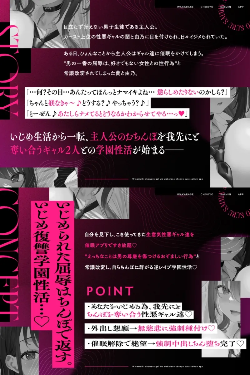 【期間限定4大特典】W生意気性悪ギャルをわからせ調教する催眠アプリ~いじめられた屈辱はちんぽで返す。常識改変逆レイプ→催眠解除で復讐する学園性活~